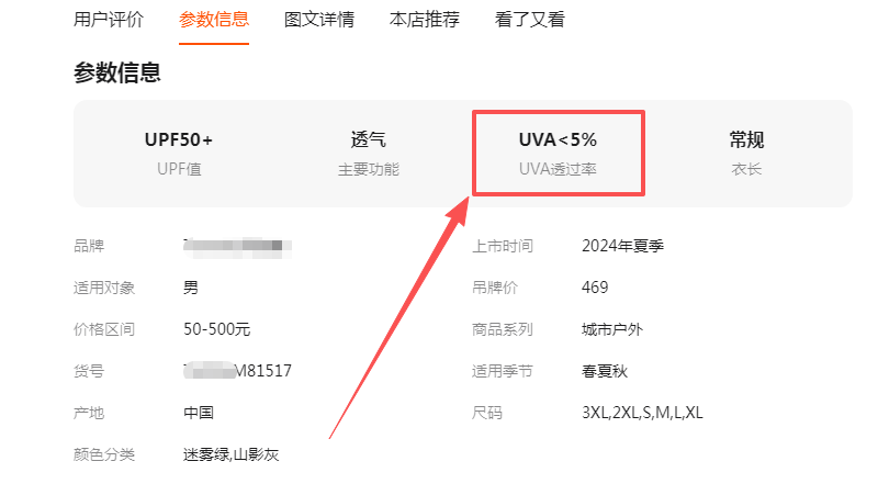 问题分析:根据错误提示,我们打开原宝贝查看它的属性,找到“UVA<5%”对应的属性,从图中可以看到,“UVA<5%”对应属性为“UVA透过率”;