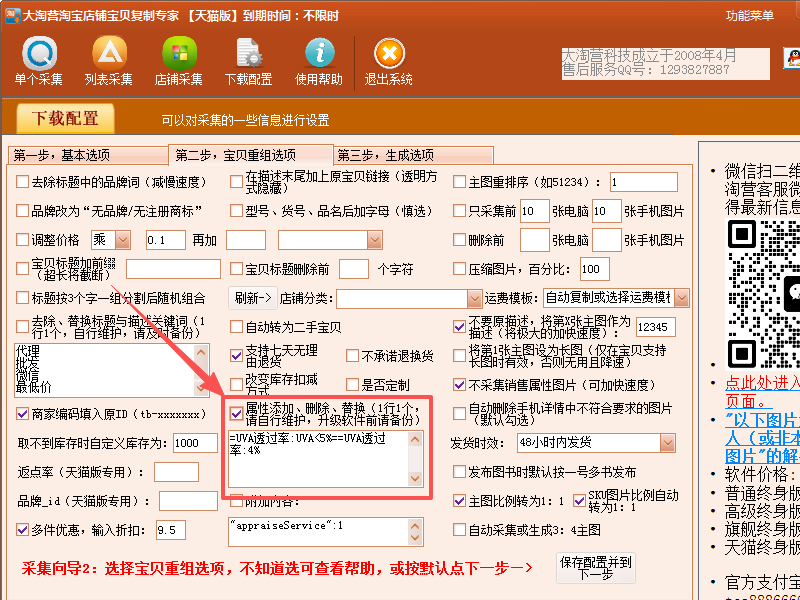 解决办法:重新复制一次宝贝,在软件下载配置第二步,勾“属性添加、删除、替换”,将原宝贝不正确的“UVA透过率”属性值替换为正确的属性值就可以了。