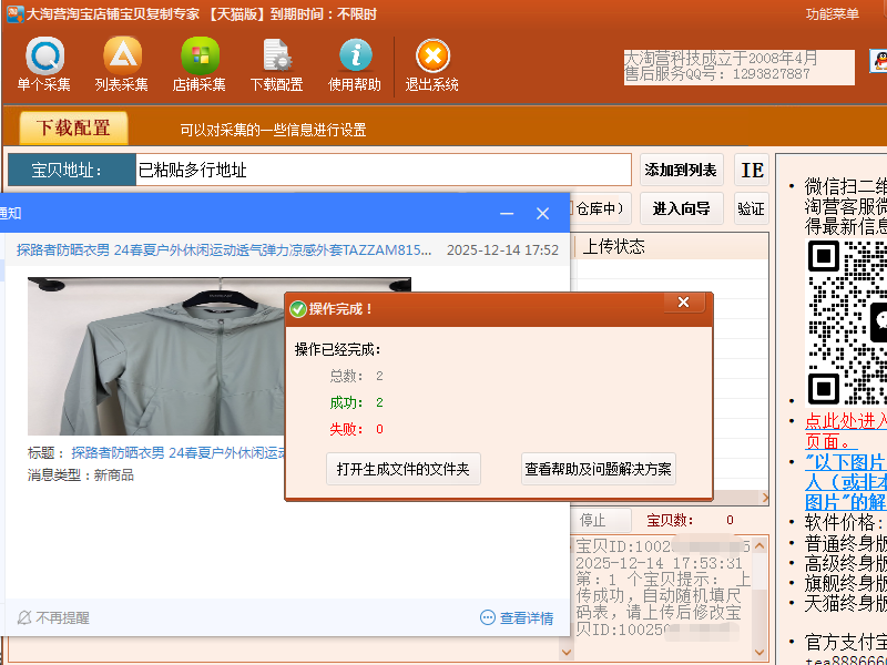 附上一张成功复制宝贝上传到淘宝店铺的截图: