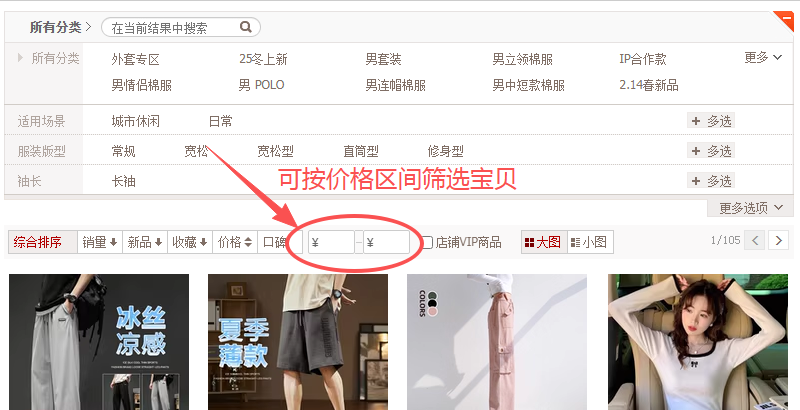 但是现在淘宝网上有些店铺的首页中,可以按照价格区间来筛选宝贝(下图一),而有些新类型店铺却没有价格区间这样的筛选方式(下图二);
