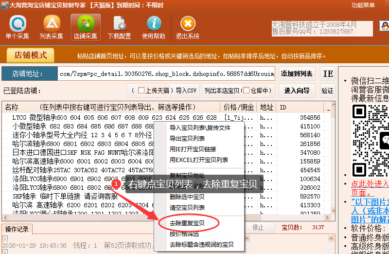 已有 5862 次阅读 2026-01-29 19:59 最近,有位购买了大淘营淘宝宝贝复制专家软件很久的客户问我们:“我要复制供应商店铺的链接上传到我的淘宝店铺里,但他店铺有3200多个宝贝,怎么才能不重复复制?”